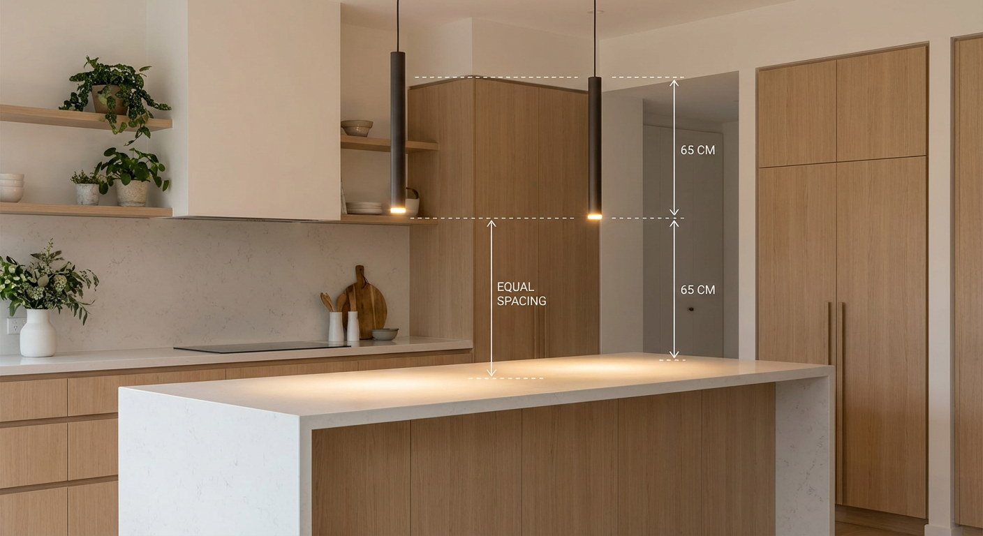 Hvis du bruger flere pendler – typisk over en køkkenø – er afstanden imellem dem lige så vigtig som højden.